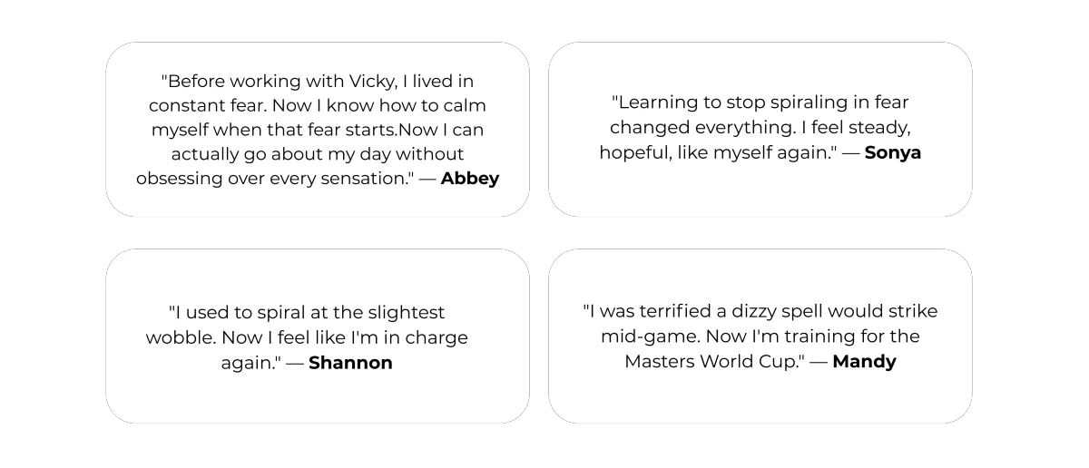 The method doesn’t promise to eliminate dizziness — it helps you calm the fear in real time, no matter what your symptoms are doing.