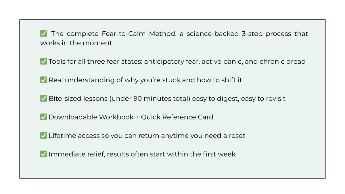 It’s a clear, science-backed method to help you calm fear in real time — even during symptoms — so you can feel safer and more in control again.